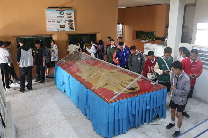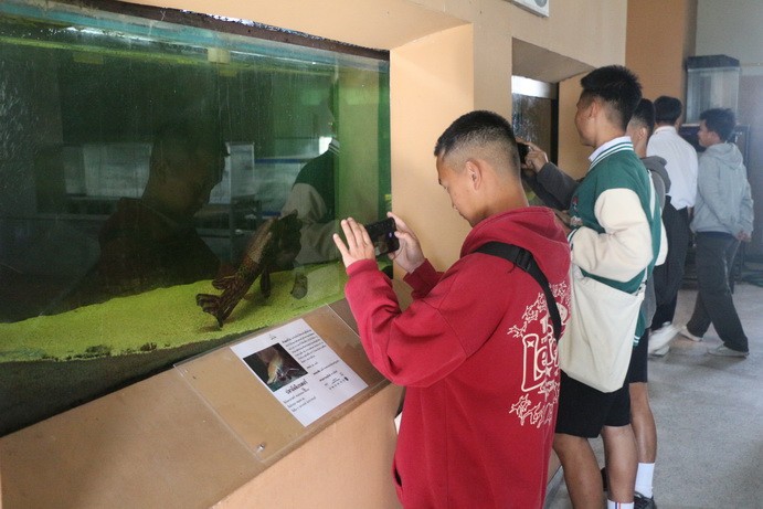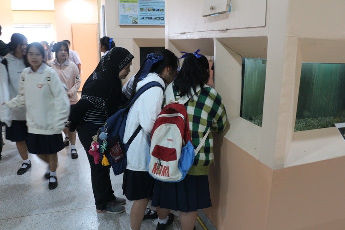 วันที่ 9 มกราคม 2569 รองศาสตราจารย์ ดร.ชนกันต์ จิตมนัส รองคณบดีฝ่ายวิชาการและประกันคุณภาพการศึกษา พร้อมด้วยคณะกรรมการบริการวิชาการ คณะเทคโนโลยีการประมงและทรัพยากรทางน้ำ มหาวิทยาลัยแม่โจ้ จังหวัดเชียงใหม่ นำโดย นางสาวณัฏฐกานต์มุกดาจตุรพักตร์ และนางสาวน้ำเพชร ประกอบศิลป์ ดำเนินการประชาสัมพันธ์หลักสูตรและแนะแนววิชาชีพด้านการประมงแบบบูรณาการร่วมกับการให้บริการวิชาการฐานเรียนรู้ด้านความหลากหลายของทรัพยากรทางน้ำและการพัฒนาเทคโนโลยีที่เหมาะสมเพื่อปรับใช้กับกระบวนการเรียนรู้และฝึกปฏิบัติทักษะความรู้ด้านการประมงในปัจจุบัน ให้กับ คณะครูและนักเรียน ระดับชั้นมัธยมศึกษาปีที่ 4 – 6 โรงเรียนราชประชานุเคราะห์ 60 อำเภอแม่ริม จังหวัดเชียงใหม่ จำนวน 70 คน โดยมีตัวแทนนักศึกษาสาขาการประมงและนวัตกรรมการผลิตสัตว์น้ำ ร่วมกำกับดูแลและแลกเปลี่ยนข้อมูลกับคณะศึกษาดูงานในระหว่างดำเนินกิจกรรมการบรรยายถ่ายทอดองค์ความรู้และการเยี่ยมชมฐานเรียนรู้ ณ สถานแสดงพรรณปลาภาคเหนือ พิพิธภัณฑ์ธรรมชาติวิทยาทางน้ำ นิทรรศการความรู้และนวัตกรรมประมง และส่วนจัดแสดงตู้ปลาสวยงามของนักศึกษาจากรายวิชาเลือกเสรีของคณะฯ ทั้งนี้ยังได้นำเยี่ยมชมห้องปฏิบัติการภายในคณะฯ เพื่อให้นักเรียนทราบกระบวนการศึกษาเรียนรู้และสิ่งสนับสนุนประกอบการพัฒนาผู้เรียนบนพื้นฐานความสนใจเฉพาะทางอย่างเป็นระบบ ตามแผนของหลักสูตรจนกระทั่งสำเร็จการศึกษาและสามารถนำไปประกอบวิชาชีพได้ ซึ่งจากการแลกเปลี่ยนเรียนรู้นักเรียนมีความสนใจประเด็นสำคัญ ได้แก่ แนวทางในการเป็นนักวิชาการที่ค้นพบปลาชนิดใหม่ (new specie) การสร้างลิขสิทธิ์ผลงานหรือนวัตกรรมด้วยเทคโนโลยีปัญญาประดิษฐ์ และสายงานในระบบราชการที่รองรับเมื่อสำเร็จการศึกษาจากหลักสูตรของคณะเทคโนโลยีการประมงและทรัพยากรทางน้ำ