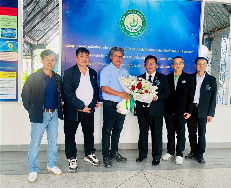 On February 18, 2025, Mr. Korn Chotitewan, Assistant Executive Chairman of Sahafarm Co., Ltd., visited Assoc. Prof. Dr.Apinun Suvarnaraksha to offer New Year greetings and congratulate him on his appointment as the Dean of the Faculty of Fisheries Technology and Aquatic Resources, Maejo University. During the visit, Mr. Korn also presented a New Year gift as a gesture of goodwill.